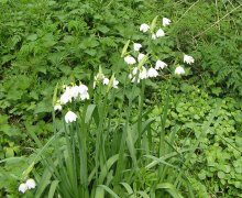 Many of the plants associated with the River Thames are those that can be seen along any lowland water but two plants are very important and are almsost unique to the Thames. The first is the Snake's-head Fritillary which can be seen along the water meadows of the upper Thames and in particular at North Meadow, Cricklade and Magdalen Meadow in Oxford. The second plant is the rare Summer Snowflake known as the Loddon Lily which takes its name from the River Loddon - a tributary of the River Thames joining below Shiplake Lock. It grows in the swampy soil beneath Willows and Alder, in damp woodland and in the wet meadows. It flowers in April and May and reaches a height of about 60cm.